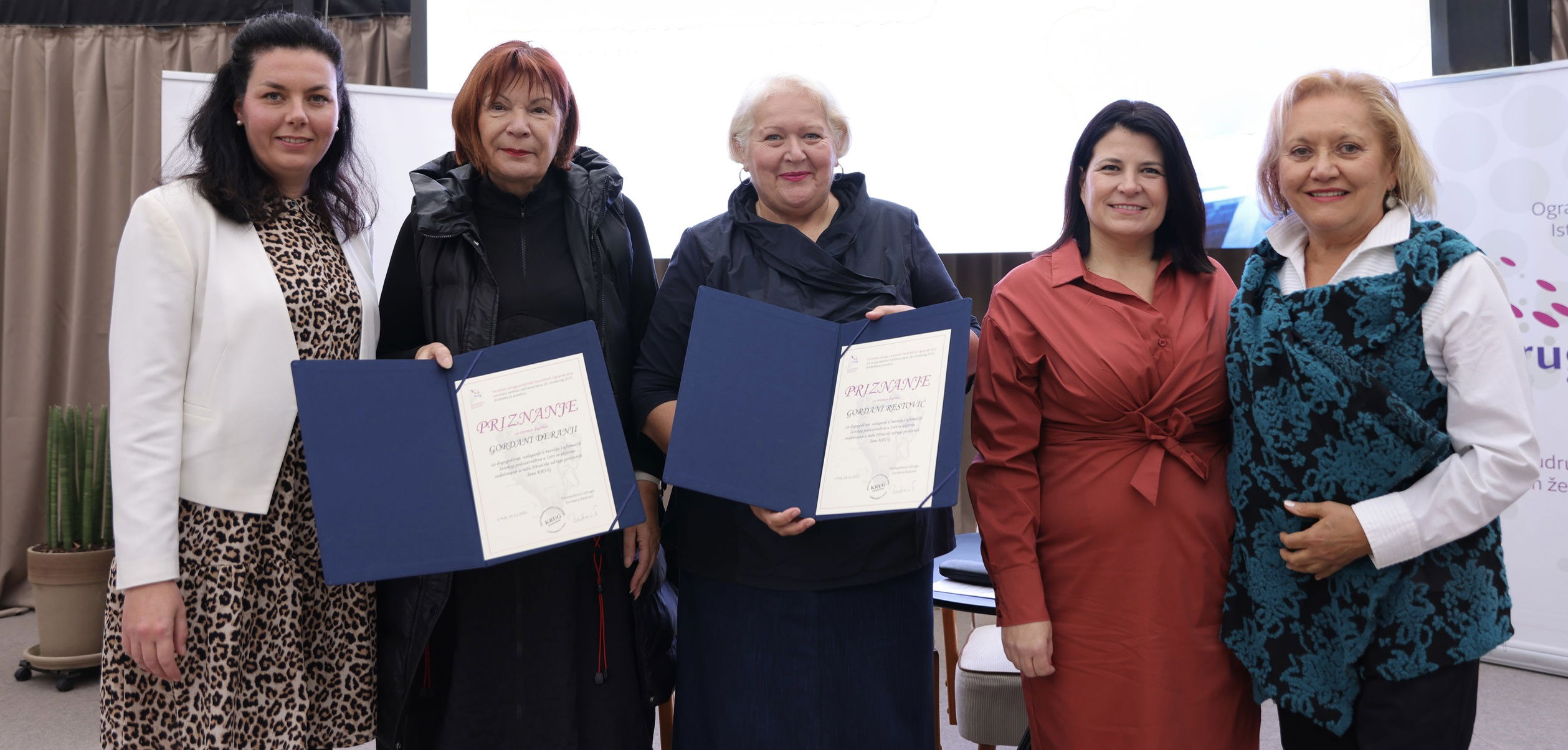 Istarski ogranak Kruga dodjelio je zahvalnice Gordani Restović za dugogodišnje zalaganje u afirmaciji ženskog poduzetništva u Istri i aktivno djelovanje u Hrvatskoj udruzi poslovnih žena Krug. Zahvalnicu je primila i Gordana Deranja predsjednica uprave Tehnomonta d.d. za doprinos kroz više mandata na čelnim funkcijama Kruga – u Ogranku Istra, i na nacionalnoj razini. Posebne zahvalnice uručila im je Jasna Jaklin Majetić, dugogodišnja članica Krug-a i nekadašnja predsjednica HGK – ŽK Pula.